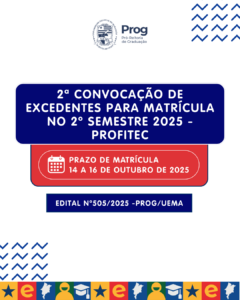 A Universidade Estadual do Maranhão (Uema), por meio da Pró-Reitoria de Graduação (Prog), divulgou a 2ª lista de convocação de candidatos excedentes no Processo Seletivo do Programa de Formação Profissional e Tecnológica (PROFITEC).
