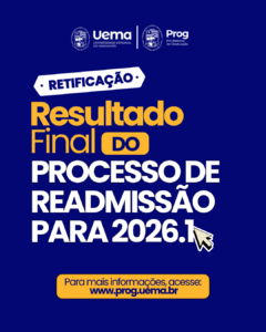 A Universidade Estadual do Maranhão (Uema), por meio da Pró-Reitoria de Graduação (Prog), publicou o Edital n.º 92/2026-PROG/UEMA, que trata da retificação do Resultado Final do Processo de Readmissão para o semestre 2026.1.