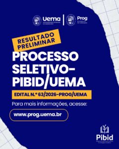 A Universidade Estadual do Maranhão (Uema), por meio da Pró-Reitoria de Graduação (Prog), divulgou o resultado preliminar do processo seletivo de estudantes no âmbito do Programa Institucional de Bolsa de Iniciação à Docência (PIBID/Uema), referente aos Editais nº 405/2024 e nº 462/2024-PROG/UEMA.