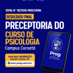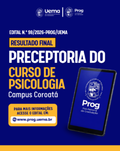 A Universidade Estadual do Maranhão (Uema), por meio da Pró-Reitoria de Graduação (Prog), torna público o resultado final para composição do banco de cadastro de interessados em atuar como preceptores do Curso de Psicologia do Campus Coroatá, mediante as normas e condições estabelecidas no Edital n.º 40/2026-PROG/UEMA.